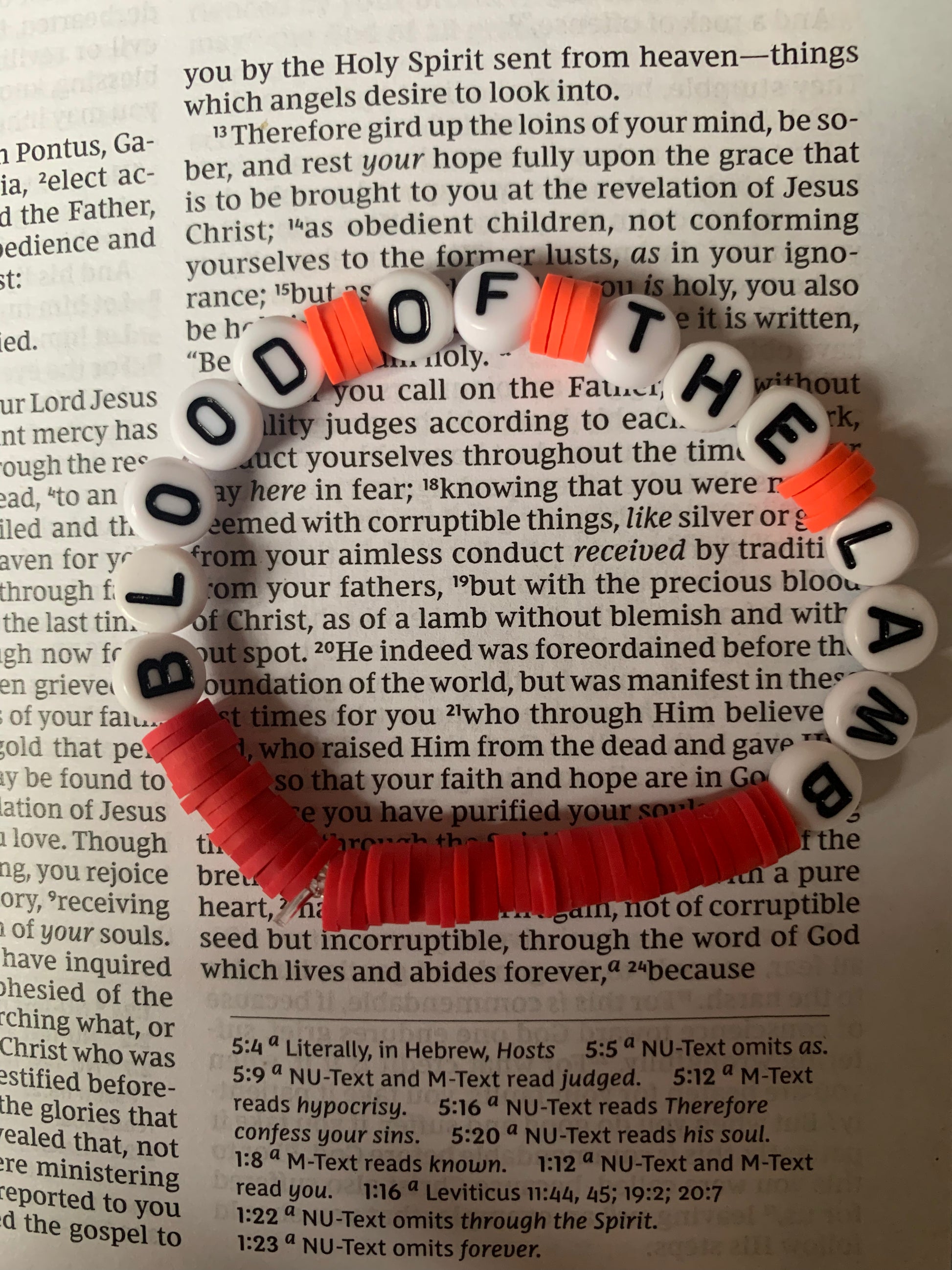 Blood of the lamb beaded elastic bracelet